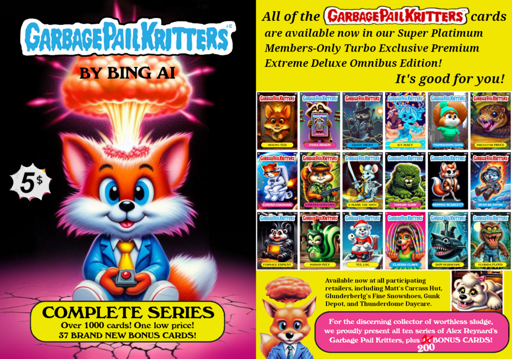 This omnibus edition contains all 10 series of Garbage Pail Kritters; 1000 cards in all!